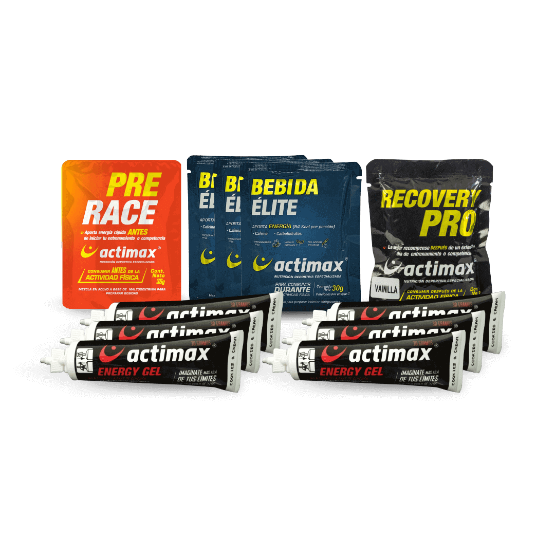 - Recovery: después de un gran reto llega la recompensa. Consume 1 sobre de Recovery Pro Actimax en 250 ml de agua después de finalizar la carrera para tu recuperación muscular.